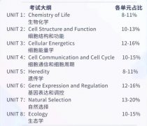 ●考试范围:细胞生物学(20%)、植物解剖学及生理学(15%)、动物解剖学及生理学(25%)、动物行为学(5%)、遗传与进化(15%)、生态学(15%)、生物分类学(5%)