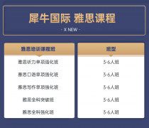 犀牛教育为了帮助考雅同学顺利上岸,特开设了雅思5.5分精品班、雅思5.5分特训班(网课)、雅思6.5分精品班、雅思6.5分特训班、雅思7.5分精品班以及Pre雅思衔接培训课程,同学们可以根据自身的雅思基础来选择适合自己的课程。