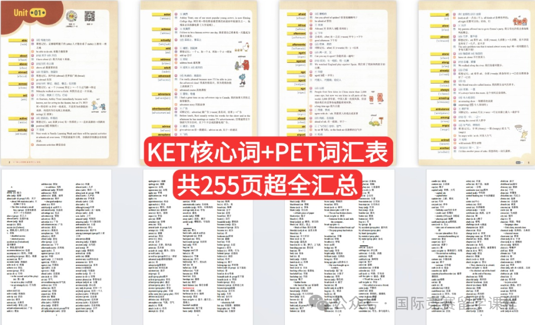近年来,KET/PET在小学家长圈里非常受欢迎,KET和PET考试已经成为了很多低年级学生提高英语能力和升学竞争力的首选竞赛,词汇一直是英语学习的核心,今天我给大家整理了《剑桥KET核心词》和《PET词汇表》免费分享~