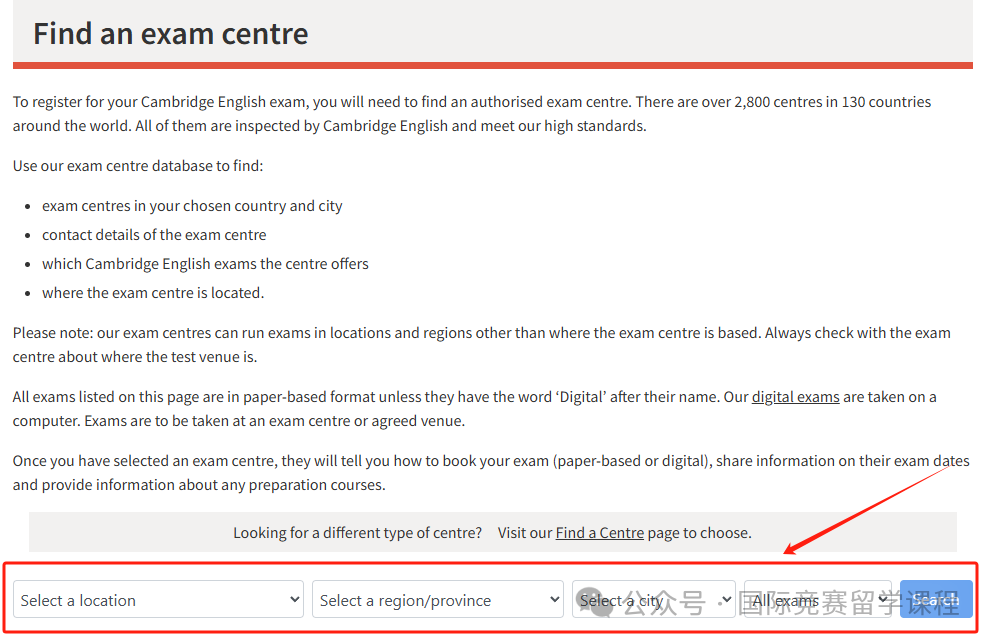 4.选择考点国家-省份-城市-考试类型,点击搜索