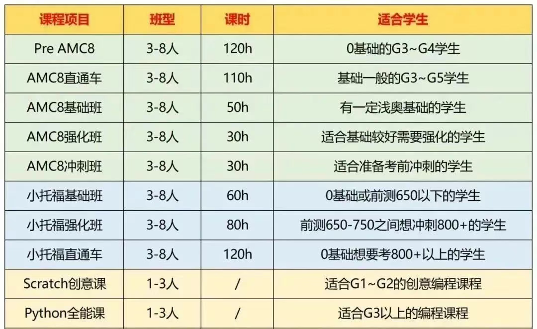 针对打算申请上海三公的同学,犀牛教育开设了上海三公培训辅导课程,包括:AMC8+小托福+科创编程,均有多种班型,满足不同需求学生的需要。